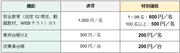 デジタル化の一歩である、「安全教育」「台帳管理」機能について、特別価格でご案内させていただきます。