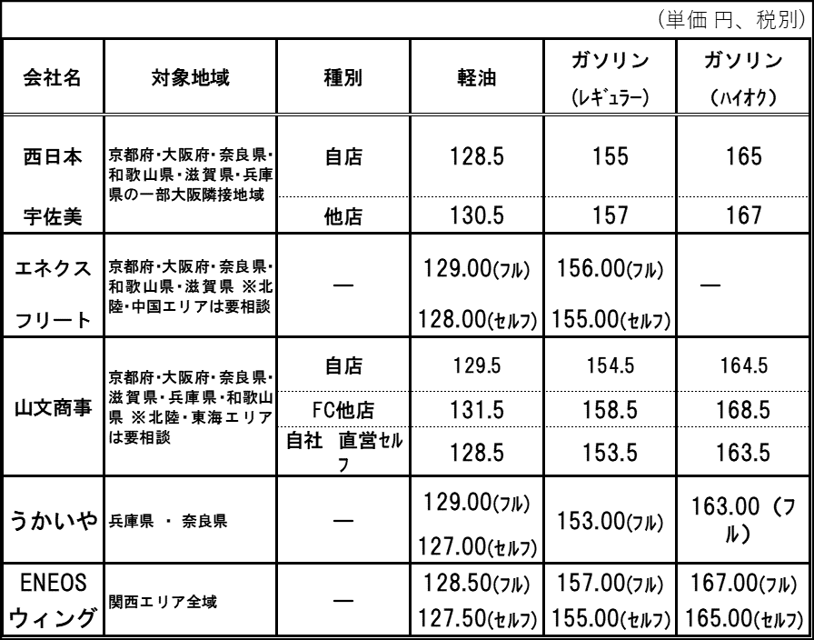 ★関西版AZ-COM通信:9月度燃料価格